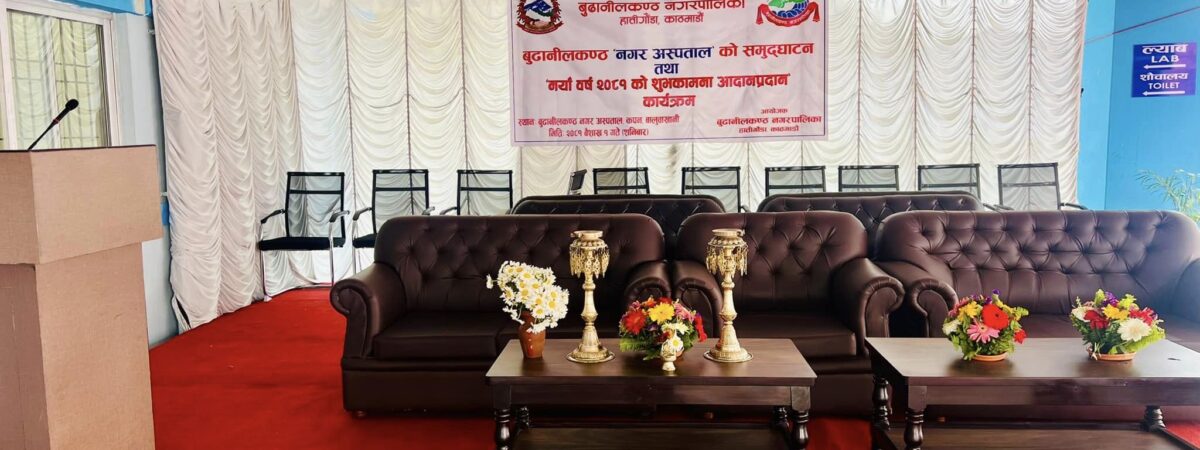 आजै बुढानीलकण्ठ नगरपालिकाले नगर अस्पतालको उद्घाटन कार्यक्रम भव्य रुपमा सम्पन्न गरेको छ। आज एक बिशेष समारोहका बीच पुर्व प्रधानमन्त्री एबम नेकपा एमालेका अध्यक्ष के.पि. शर्मा ओलिले बुढानीलकण्ठ नगरपालिका नगर अस्पतालको रिवन काटेर उद्घाटन गरेका हुन्। नयाँ बर्षको अबसर पारेर शुभकामना आदान प्रदान सहितको भव्य उद्घाटन समारोह बूढानिलकण्ठ १० बालुवाखानी, डिट्टाचौर, कपनमा गरिएको हो। त्यस अबसरमा नेकपा एमालेका अध्यक्ष तथा पुर्व प्रधानमन्त्री केपी शर्मा ओलीले १ हजार तिरेर अस्पतालको सेवा समेत लिएका छन् । नवनिर्मित अस्पताल भ्रमण गरेका पुर्व प्रधानमन्त्री ओलीको स्वास्थ्य जाँच डा. भगवान कोइरालाले गरेका थिए ।