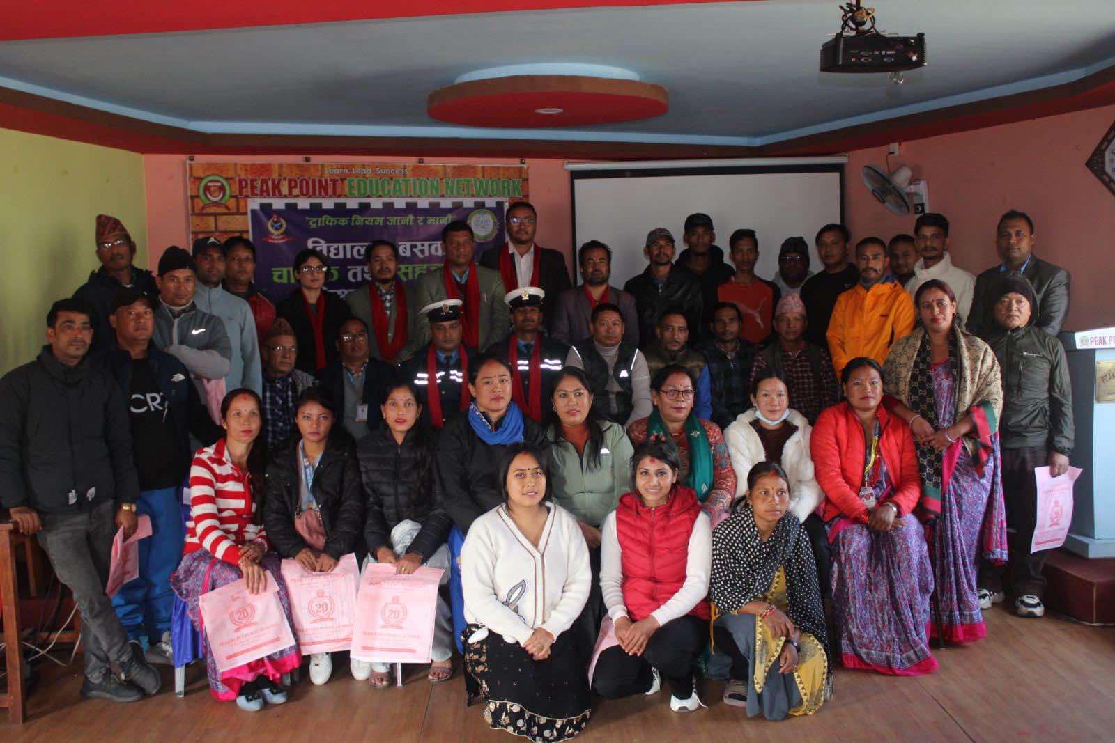 पिक प्वाईन्ट एकेडेमीमा सम्पन्न भएको उक्त कार्यक्रममा ट्राफिक प्रहरी प्रभाग कपनका ईन्चार्ज सन्तोष खत्री सहजकर्ताको रुपमा उपस्थित थिए भने विभिन्न विद्यालयका सवारीचालक र सहचालकहरुको कार्यक्रममा उत्साहजनक उपस्थिति रहेको थियो ।