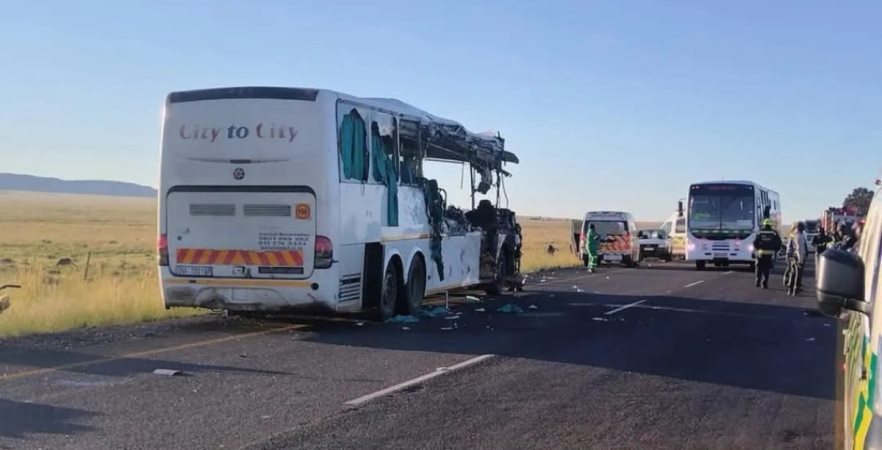 जोहानेसवर्ग । दक्षिण अफ्रिकाको केन्द्रीय प्रान्त फ्रि स्टेटमा बुधबार बिहान बस र ट्रक आपसमा ठोकिँदा १० जनाको मृत्यु हुनाका साथै कैयौँ घाइते भएका छन्।