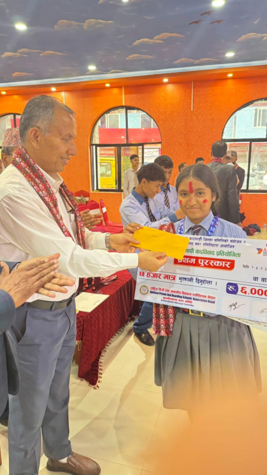 उक्त प्रतियोगितामा मेघा पब्लिक स्कूलकी कृशाला प्याकुरेल प्रथम, पाणिनी स्कूलकी आशिस्मा भट्टराई दोस्रो, मिलन धर्मस्थलीकी कृस्टिना सिम्खडा तृतीय तथा बोधी सदनकी जेशिका राउत र बेस्ट ग्रुप भिजन स्कूलकी कृपा घले सान्त्वना पुरस्कार विजेता घोषित भएका थिए ।विजेताहरूलाई शिल्ड, मेडल, प्रमाणपत्र तथा नगद पुरस्कार प्रदान गरिएको थियो।