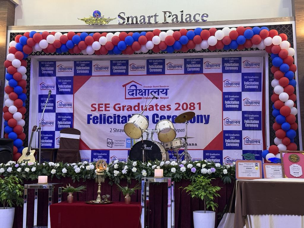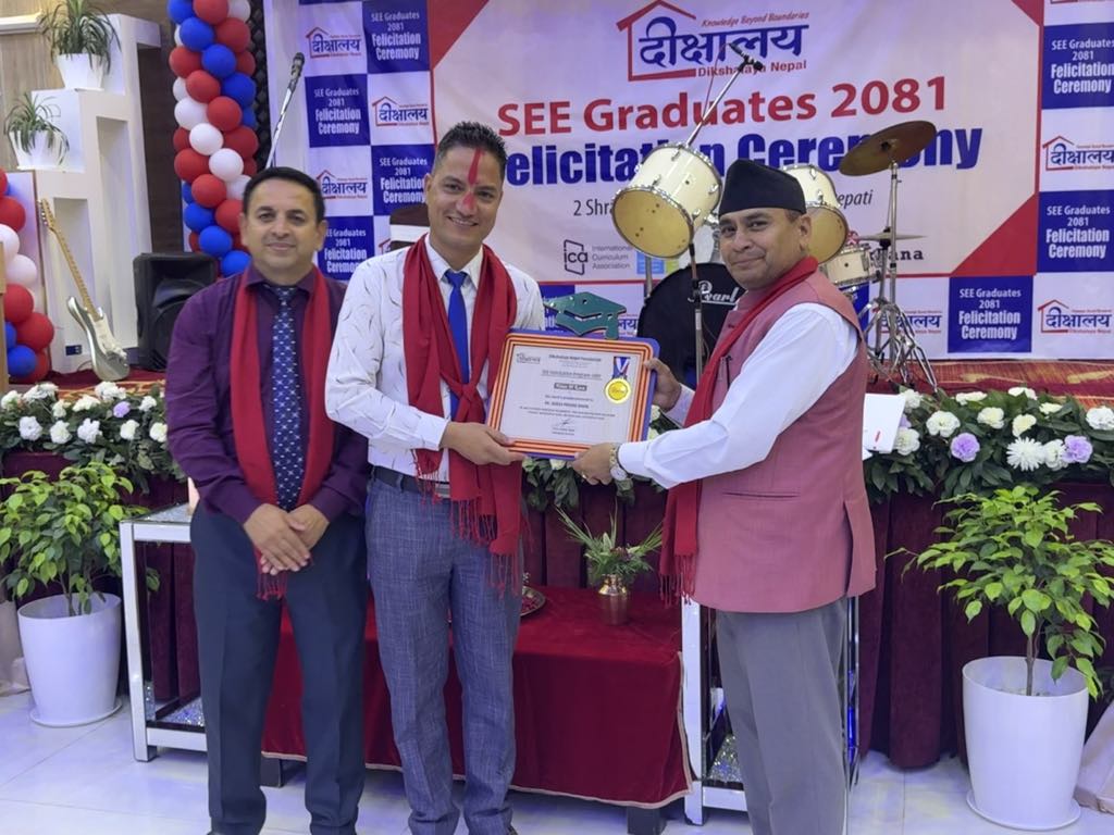 काठमाडौं । बुढानिलकण्ठ नगरपालिका वडा नम्बर ११ मा रहेको दिक्षालय नेपाल फाउन्डेशनले भर्खरै सम्पन्न एसइई परिक्षा २०८१ मा उत्रिण बिधार्थीहरु तथा उनीहरुका अभिभावकहरुलाई सम्मान कार्यक्रम आयोजना गरेको छ। राजधानीको चावहिल स्थित स्मार्ट प्यालेसमा आयोजना गरिएको एक भव्य समारोहमा बिधालयले सम्मान कार्यक्रम आयोजना गरेको हो।