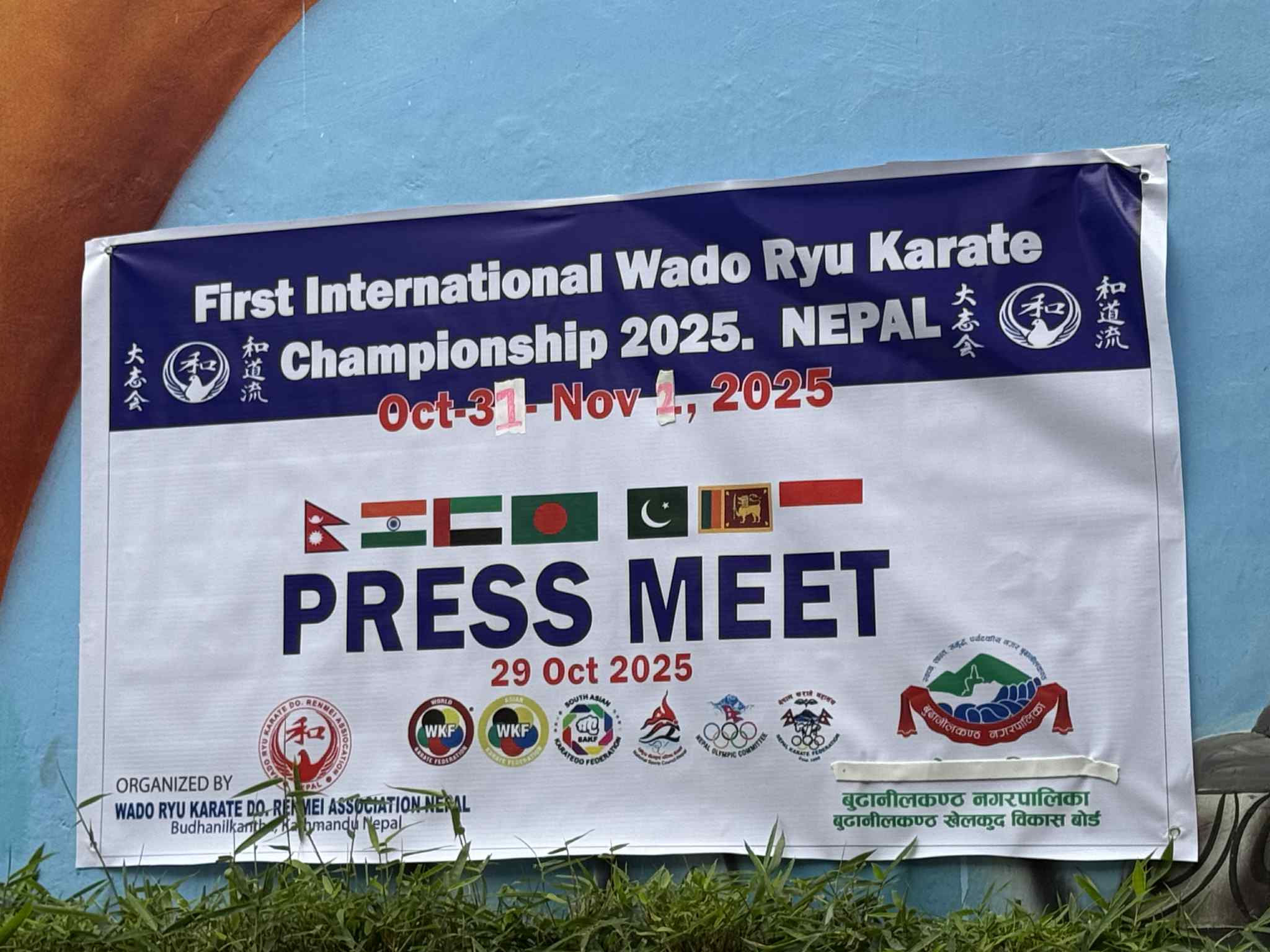 काठमाडौं। बुढानीलकण्ठ नगरपालिका खेलकुद विकास वोर्ड र वादेरियो कराँते डो. रेन्मेई संघ नेपालको संयुक्त आयोजनामा ” 1st International Wado Ryu Karate Seminar andChampionship 2025 ” हुने भएको छ। बुढानीलकण्ठ नगरपालिका वडा नं ८ स्थित गोल्फुटार सेमिइन्डोर वास्केटबल कोर्टमा आयोजना हुने प्रतियोगितामा आयोजक राष्ट्र नेपाल सहित ७ राष्ट्रका करिव ४०० जना खेलाडिको सहभागिता रहने आयोजकले पत्रकार सम्मेलन मार्फत जानकारी दिएको छ।