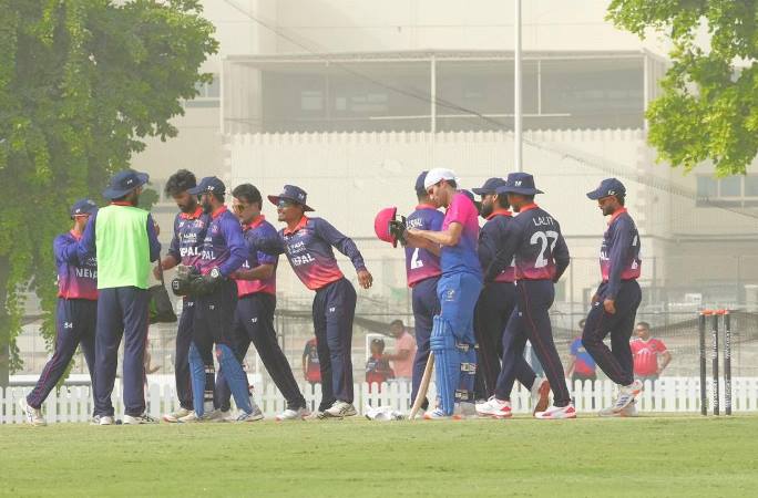 त्यसअघि, ब्याटिङ गरेको नेपालको लागि भीम सार्कीले सर्वाधिक ४८ रन बनाए। उनले ६८ बलमा ४ चौका प्रहार गरे।