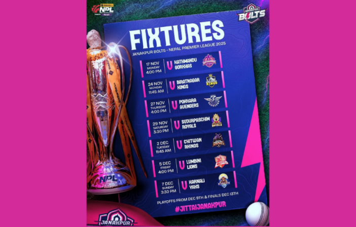 काठमाडौं । नेपाल क्रिकेट सङ्घ (क्यान)ले नेपाल प्रिमियर लिग (एनपिएल)को दोस्रो संस्करणको तालिका आज सार्वजनिक गरेको छ । आगामी मङ्सिर १ गतेदेखि सञ्चालन हुने उक्त प्रतियोगिताका खेलहरू कीर्तिपुरस्थित त्रिवि अन्तरराष्ट्रिय क्रिकेट रङ्गशालामा हुनेछ ।