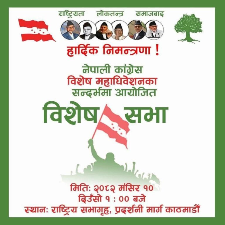 काठमाडौं । नेपाली कांग्रेसमा विशेष महाधिवेशन पक्षधरले आज विशेष भेला (सभा) बोलाएको छ ।