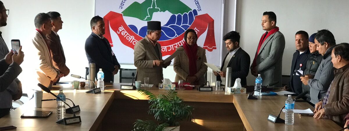 बुढानीलकण्ठ। बुढानीलकण्ठ नगरपालिका नगर युवा परिषदका नवनियुक्त कार्यकारी उपाध्यक्ष शिरिष पौडेलको सपथ ग्रहण कार्यक्रम सम्पन्न भएको छ। बुढानीलकण्ठ नगरपालिका नगर युवा परिषदका अध्यक्ष एवं नगर प्रमुख मिठाराम अधिकारीले पौडेललाई आज सपथ ग्रहण गराएका छन्।