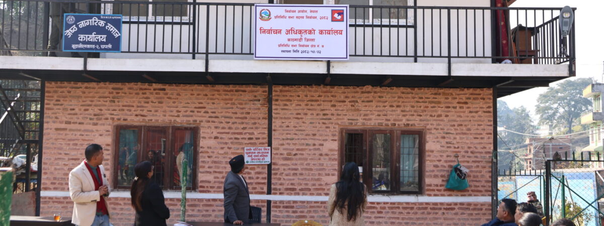 काठमाडौं । जिल्ला निर्वाचन कार्यालय, काठमाडौँ निर्वाचन क्षेत्र नं. ४ को निर्वाचन अधिकृतको कार्यालय बुढानीलकण्ठ नगरपालिका वडा नं. २ स्थित जेष्ठ नागरिक भवनमा स्थापना गरिएको छ। जिल्ला निर्वाचन कार्यालय, काठमाडौँको पत्राचारअनुसार कार्यालय स्थापना गर्न आवश्यक फर्निचर, कम्प्युटर लगायतका सामग्रीहरूको व्यवस्था बुढानीलकण्ठ नगरपालिकाको सहकार्यमा गरिएको हो।