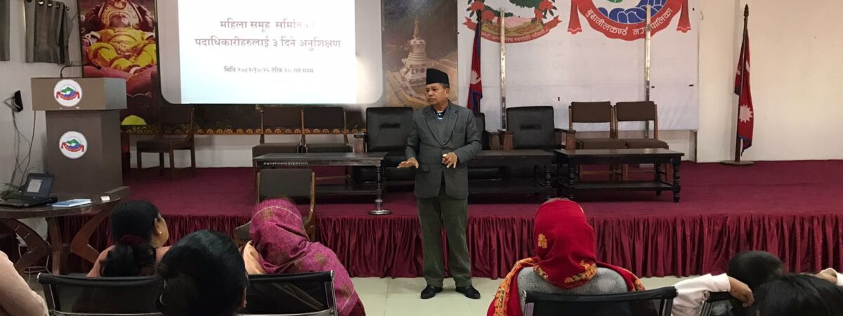 बुढानीलकण्ठ । बुढानीलकण्ठ नगरपालिकामा समूह, संस्था तथा विभिन्न समितिका पदाधिकारीहरूका लागि आयोजित तीन दिने अनुशिक्षण कार्यक्रम सम्पन्न भएको छ। यहि माघ २६ देखि २८ गतेसम्म सञ्चालन भएको उक्त कार्यक्रममा सहभागीहरूलाई नेतृत्व विकास, समूह व्यवस्थापन, लेखा प्रणाली, सामाजिक सुरक्षा तथा स्थानीय तहबाट हुने सेवा प्रवाहसम्बन्धी जानकारी प्रदान गरिएको नगरपालिकाले जनाएको छ।