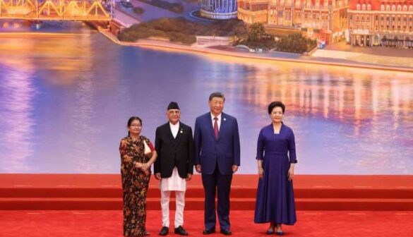 प्रधानमन्त्री ओली चिनियाँ राष्ट्रपति सीद्वारा आयोजित स्वागत समारोहमा सहभागी