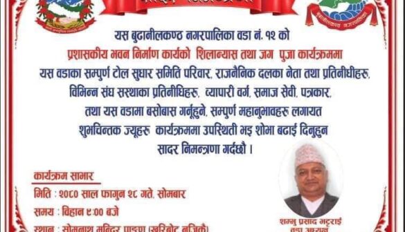 बुढानीलकण्ठ-१२ को कार्यालय भवन शिलान्यास तथा जग पुजा कार्यक्रम सम्पन्न
